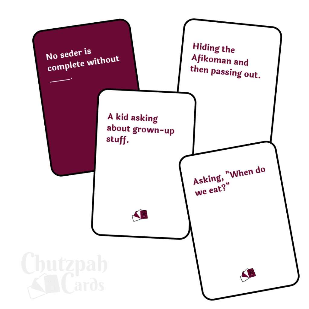 Slightly Scandalous Seder Cards is a hilarious Seder-themed family-friendly card game. A fun way to tell the Passover story, a lovely gift for your Seder hosts, and especially good for passing those long yontiff hours.